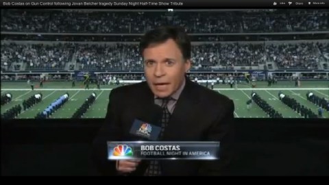 Bob Costas’ Sunday Night “perspective,” his celebrated half-time denouncement of American gun culture, wasn’t just dissonant hectoring. It wasn’t just a burlesque of Murrow or Cosell (USA Today‘s forced, but mewed association). No, it was an accidental breaking of the fourth wall of State Terrorism. The televisual lecture was no different from an innocent child stating an obvious and inconvenient fact to his mother in polite company.