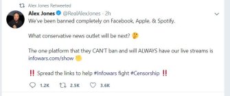 Trump’s tweets come just weeks after tech companies like YouTube and Facebook removed pages and content belonging to the right-wing conspiracy theorist Alex Jones, who claimed Silicon Valley is engaged in a liberal plot to shut out conservative media outlets for political purposes.