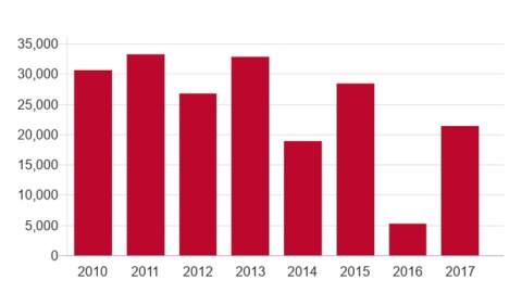 Here are the total reported measles cases in Europe for 2017.