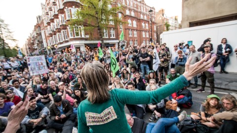 Extinction Rebellion has organized protests throughout the U.K. aimed toward achieving three goals: compelling governments to declare a climate and ecological emergency; to halt biodiversity loss and reduce greenhouse gas emissions to net zero by 2025; and to have governments form and obey a citizens’ assembly in regard to climate and ecological issues.