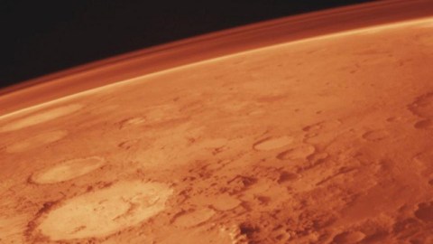 A dust storm on Mars, a common occurrence during the Martian summers. These storms were first discovered by the Mariner 9 mission in 1971. Image credit: NASA/JPL-Caltech/MSSS, from Mars Reconnaissance Orbiter.