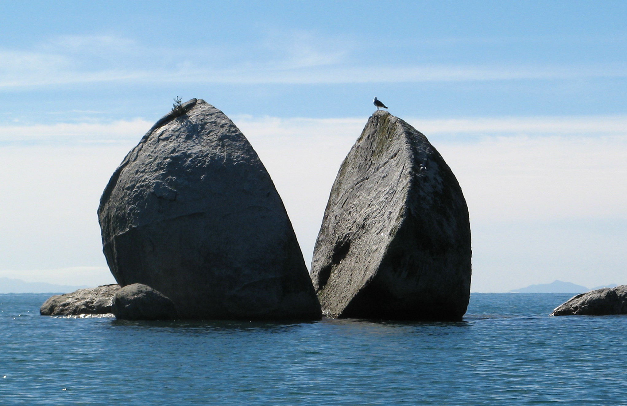 Meanwhile, New Zealand’s “Split Apple Rock” shows a similar, almost-perfect split.