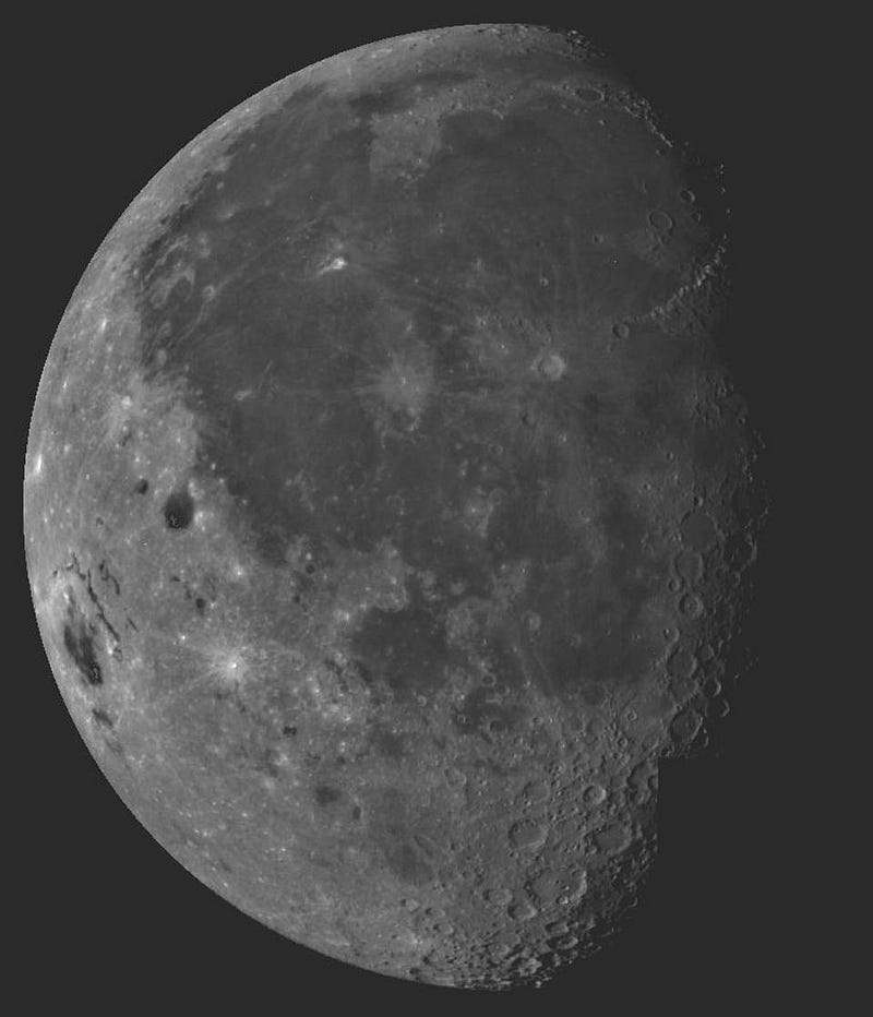 The history of impacts in our Solar System is literally written on the faces of worlds like the Moon. Where the lunar highlands are — the lighter spots — we can see a longstanding history of heavy cratering, dating all the way back to the earliest days in the Solar System: more than 4 billion years ago. There are a great many large craters with smaller and smaller craters inside: evidence that there was an incredibly high level of impact activity early on. However, if you look at the dark regions (the lunar maria), you can see far fewer craters inside. Radiometric dating shows that most of these areas are between 3 and 3.5 billion years old, and even that is different enough that the amount of cratering is far less. The youngest regions, found in Oceanus Procellarum (the largest mare on the moon), are only 1.2 billion years old and are the least cratered.