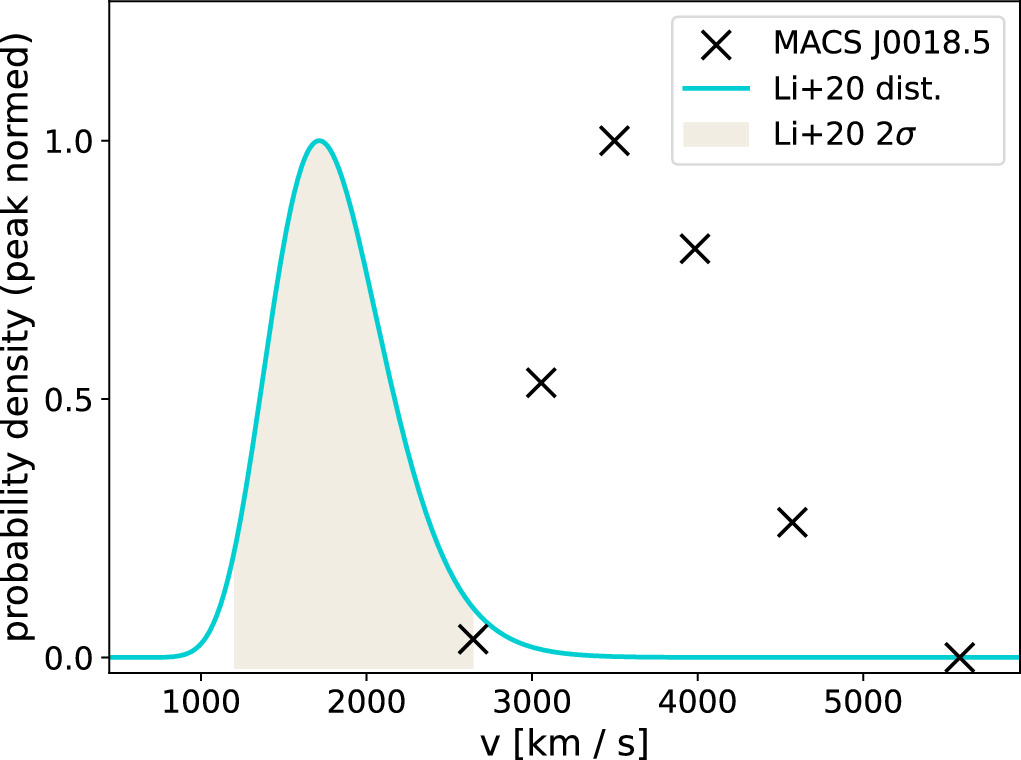 The head-on nature of MACS J0018.5+1626 reveals both normal matter’s and dark matter’s speeds.