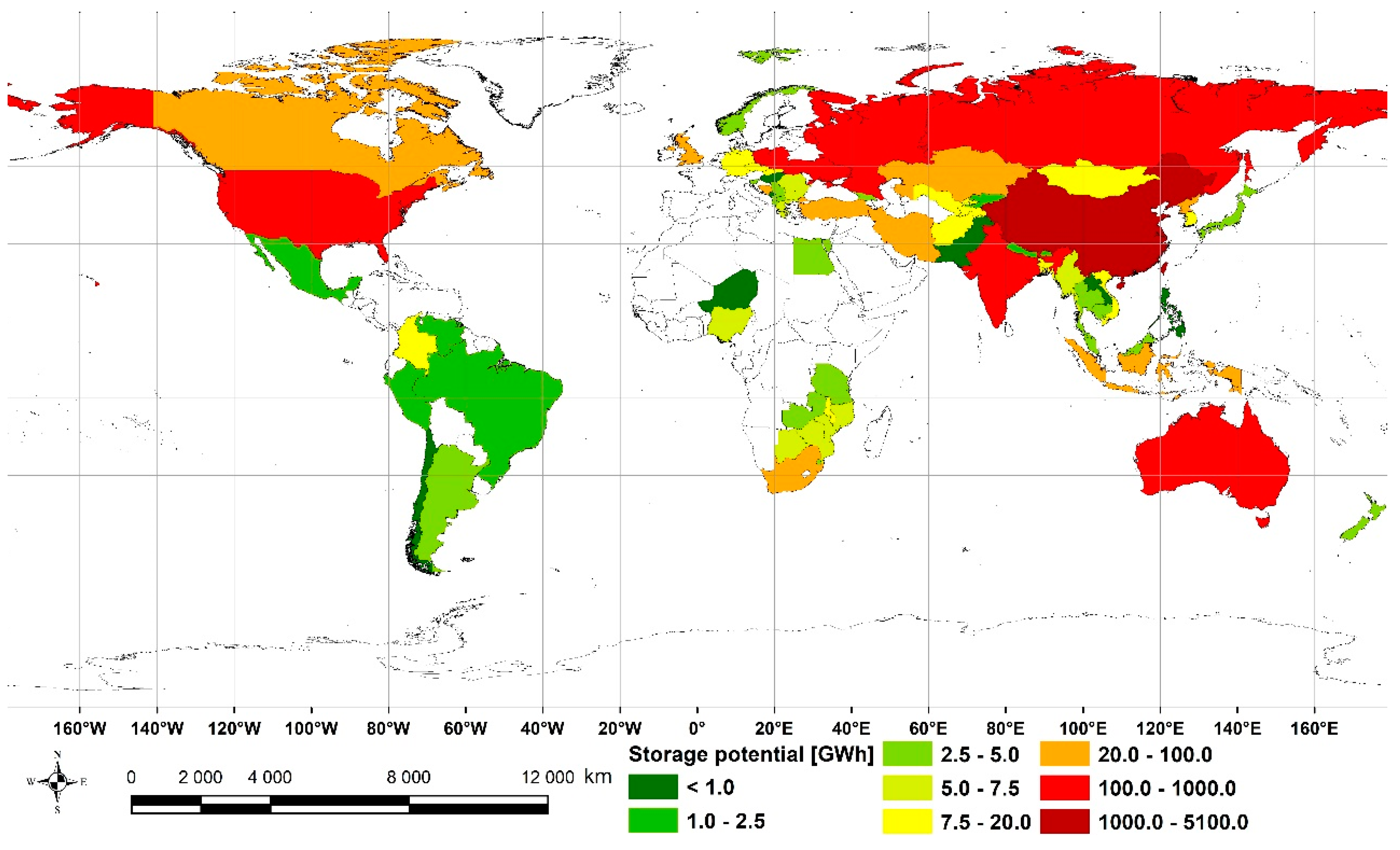 enormous amounts of energy storage can be achieved. The technology is estimated to have a global energy storage potential of 7-70 TWh (Tera-Watt hours): enough (at the high end) to power the entire world for a full 24 hours.