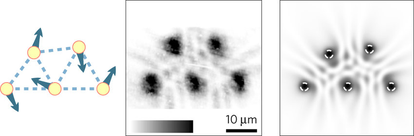 1.) Complex systems can exhibit aggregate behaviors that only emerge from the interaction of many smaller, simpler systems. It’s a remarkable feat that we can take the same simple system we were just considering — a particle moving along a circular path — and, by combining enough of them, can observe a complex, aggregate behavior that no individual “part” would reveal. Even if the circular path that each particle takes is static and unmoving, as above, the collective behaviors of each component, when taken together, can sum up to something spectacular.
