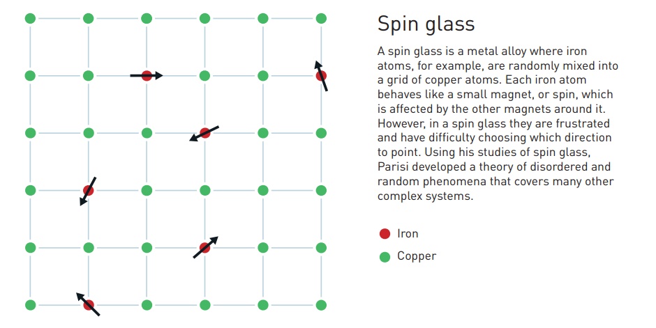 Just as Manabe and Hasselmann helped us get to that point for climate science, Parisi helped us get there for not just the specific materials known to exhibit these properties, i.e. spin glass, but also an enormous number of mathematically similar problems. The method first used to find an equilibrium solution to a solvable model of spin glass was pioneered by Parisi in 1979 with a then-novel method known as the replica method. Today, that method has applications ranging from neural networks and computer science to econophysics and other fields of study.