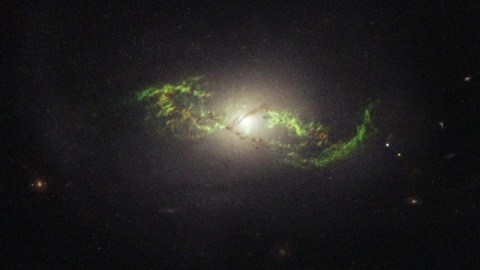 Modern ‘green pea’ galaxies have their doubly-ionized oxygen emission offset from the main galaxy; in the Subaru Deep Field, the galaxies themselves exhibit the strong emission. Image credit: NASA, ESA, and Z. Levay (STScI), with science by NASA, ESA, and W. Keel (University of Alabama, Tuscaloosa).
