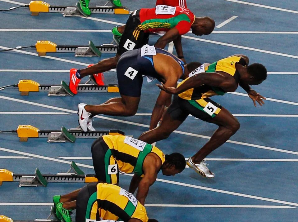 In 2011 at the World Athletics Championships in South Korea, a single false start disqualified world record holder Usain Bolt from the 100 meter race. Reacting to the gun faster than 0.1 seconds results in a false start, as humans cannot react quicker than that.