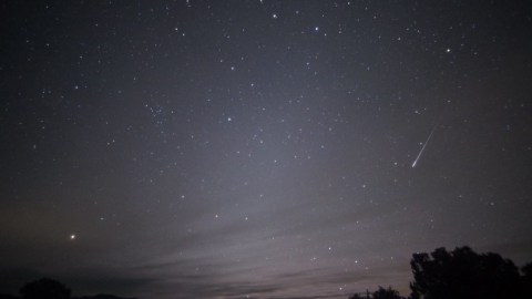 The 1997 Leonid meteor shower, as seen from space. When the meteors strike the top of Earth’s atmosphere, they burn up, creating the bright streaks and flashes of light we associate with meteor showers. Occasionally, a falling rock will be large enough to make it to the surface, becoming a meteorite. (NASA / PUBLIC DOMAIN)