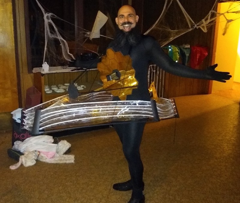 In all its golden glory, I have put together a James Webb Space Telescope costume this year, complete with sunshield and all!