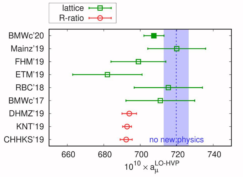 The first three were flukes, and they were not reproducible. The second two are still on the table, but neither one has hit the 5-sigma threshold: the “gold standard” for discoveries in particle physics. The muon g-2 experiment, in particular, might point towards a theoretical misunderstanding more than anything, as the two ways to calculate what the expected theoretical value ought to be — from quantum field theory calculations and from lattice QCD techniques — disagree with one another by approximately the same margin as the experiment disagrees with the field theory calculations.