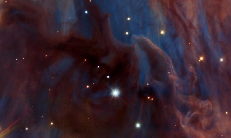 In fact, this is simply a cloud of gas and dust that’s a mere 500 light-years away: a dark nebula known as Barnard 68. Over 100 years ago, the astronomer E. E. Barnard surveyed the night sky, looking for regions of space where there was a dearth of light silhouetted against the steady background of the Milky Way’s stars. These “dark nebulae,” as they were originally called, are now known to be molecular clouds of neutral gas, and are sometimes also known as Bok globules.