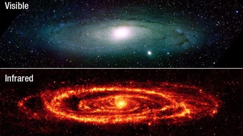 As it turns out, this galaxy can be seen in visible light, it’s just very dim, and partially obscured by dust and by foreground emissions. Even the Hubble Space Telescope, for all its power, can only obtain an image that pales in comparison to the infrared shots that an observatory like WISE can take.