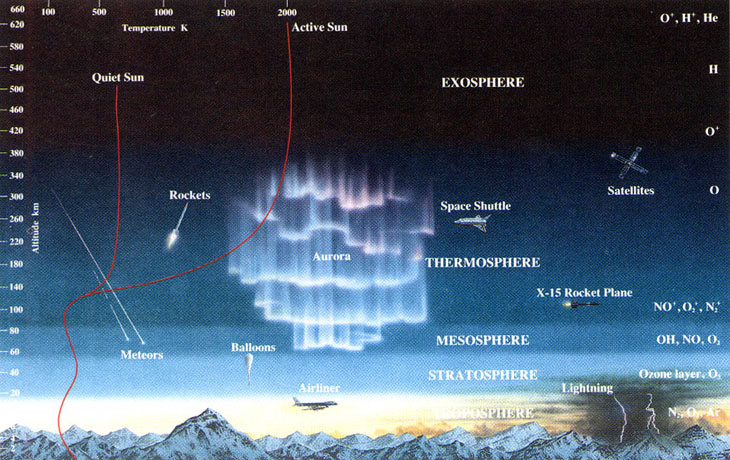 But as you go to extreme altitudes — into Earth’s thermosphere — the highest-energy radiation from the Sun can split molecules apart into individual atoms, and then kick the electrons off of those atoms, ionizing them. Even though the density of particles is tiny, the energy-per-particle is very high, and these ionized particles have tremendous difficulty radiating their heat away. As a result, even though they carry only a minuscule amount of heat, their temperature is tremendous.