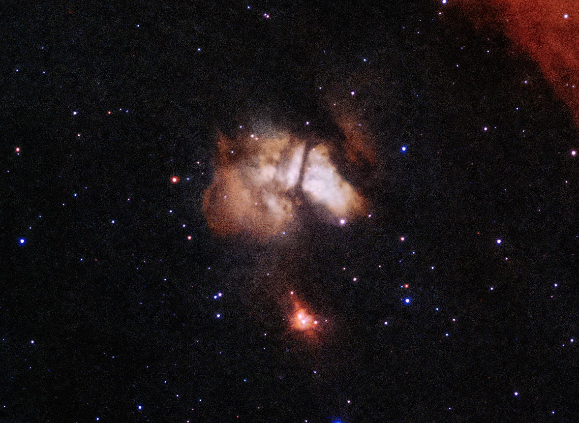 This might be the smallest identified self-contained star-forming region, spanning only perhaps ~10 light-years across. At the lower portion of the image, a pair of stars shine brightly in a dusty region of space, perhaps hinting at a momentous end-of-life event soon to come.