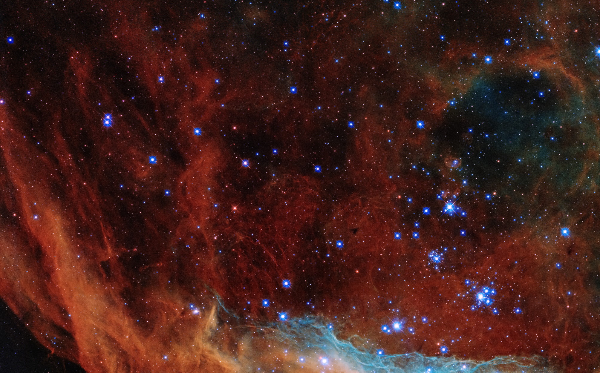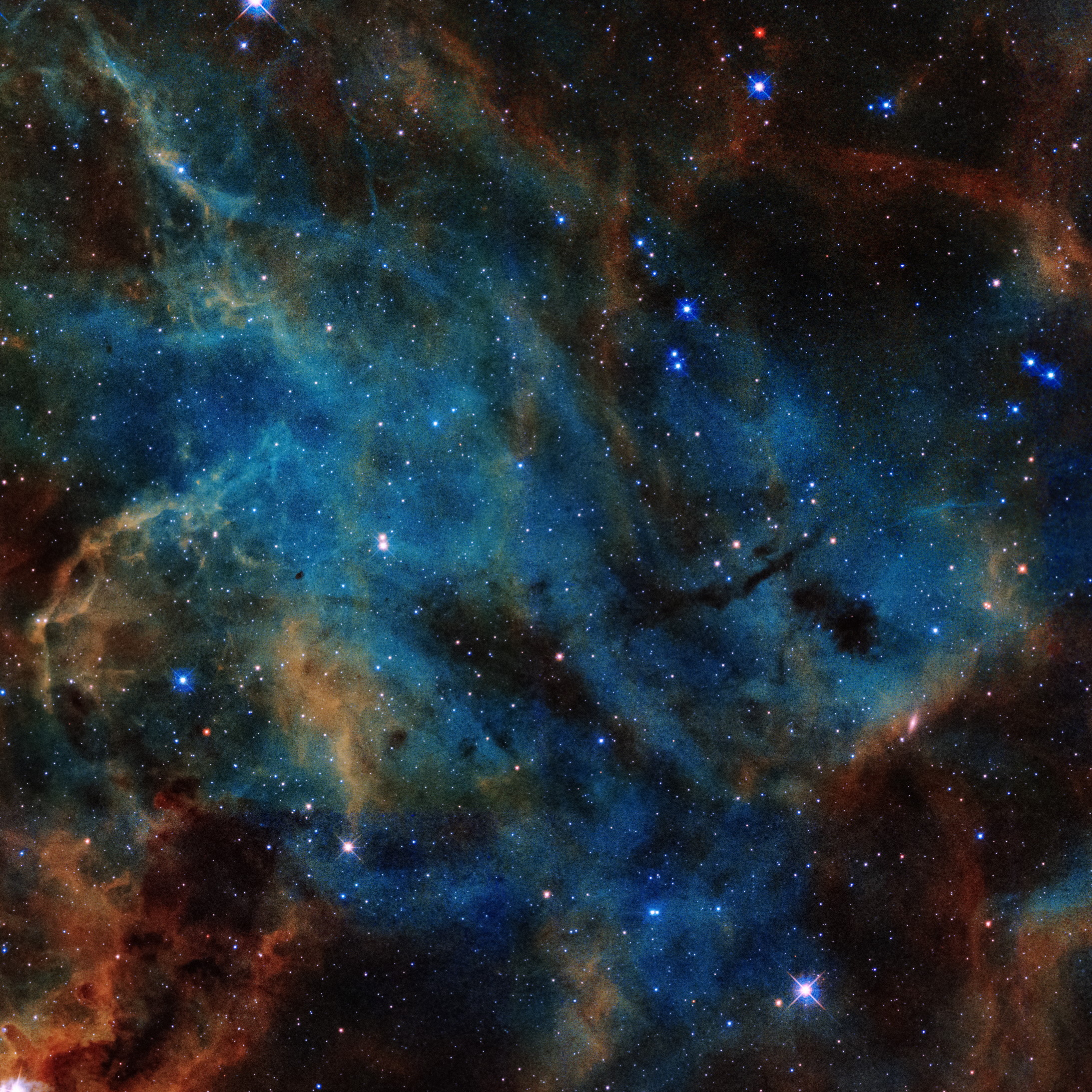The deep blue color that’s highlighted in this portion of the large star-forming region within the Large Magellanic Cloud arises from starlight reflecting off of nearby neutral matter. The starlight here is dominated by bright blue stars, and so this reflection nebula shines blue as well.