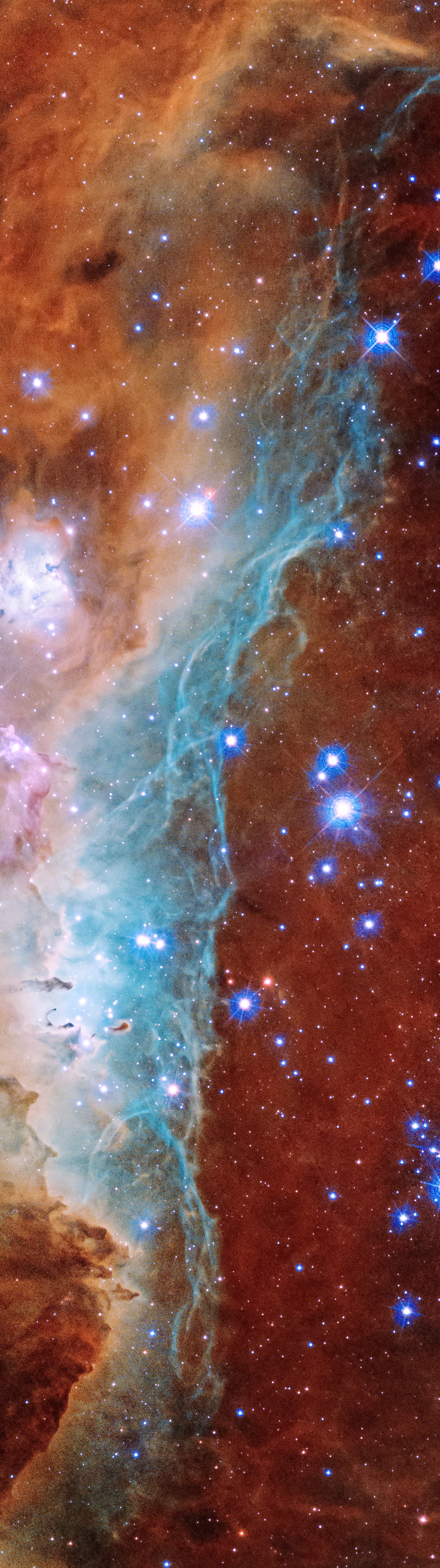 This rotated view of the boundary between the dust-poor region (right) and the dust-rich region (left) of the Cosmic Reef nebula, NGC 2014, shows off a variety of rich features. The biggest dichotomy is that on the right, star-formation has completed, while on the left, it is still ongoing within those dust-rich structures.