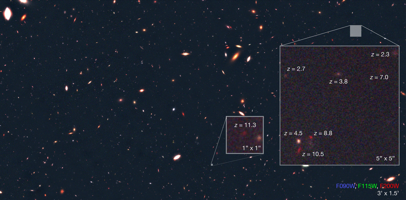 Credit: NASA, ESA, CSA, M. Zamani (ESA/Webb); Science credits: Brant Robertson (UC Santa Cruz), S. Tacchella (Cambridge), E. Curtis-Lake (UOH), S. Carniani (Scuola Normale Superiore), JADES Collaboration; Annotation: E. Siegel