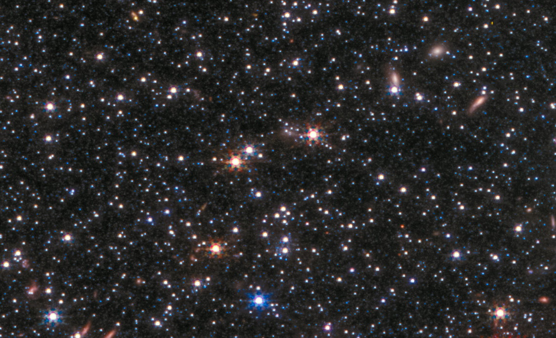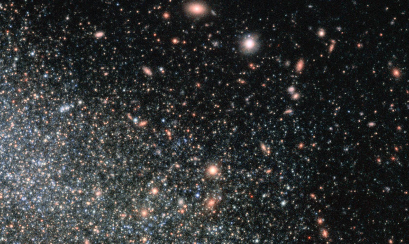 Here on the outskirts of dwarf galaxy Wolf-Lundmark-Melotte (WLM), stars of various colors and brightnesses can be seen as revealed by ESO’s OmegaCAM on the VLT Survey Telescope. The galaxy is so isolated that it may never have interacted or merged with any other galaxy since its formation more than 13 billion years ago, and the most metal-poor stars within it, highlighted here, support that picture.