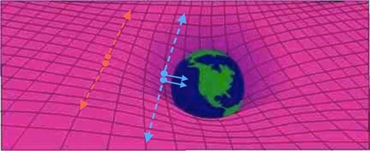 Now, imagine you had this particle/antiparticle pair moving rapidly, as though they had fallen from outer space, and then annihilated close to the surface of Earth. Those photons would now have extra energy: not just the E from E = mc2, but the additional E from the amount of kinetic energy they gained by falling: from converting gravitational potential energy into the energy-of-motion.