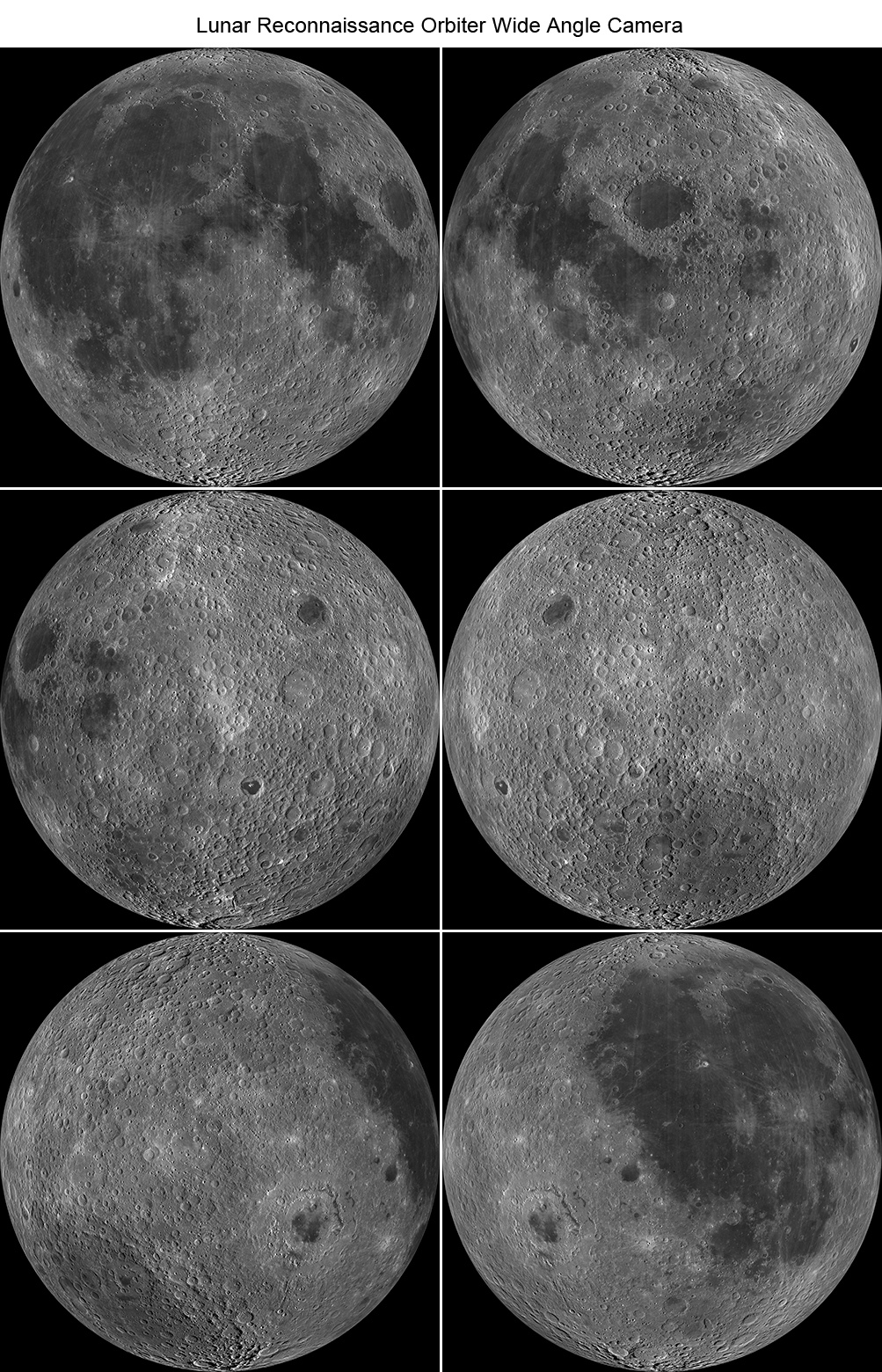 - and many craters of different sizes superimposed atop one another, but found almost exclusively in the light highland areas.