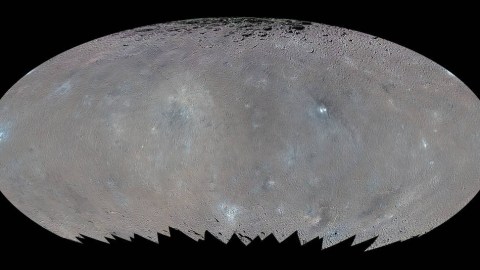 Just a few years ago, the highest-resolution map of Ceres, ever, was taken from millions of miles away by the Hubble Space Telescope, and could only see features about 20 miles (32 km) in size. Today, NASA’s Dawn spacecraft has just released images it took orbiting just 240 miles (385 km) above the surface, where we can now resolve features as small as 115 feet (35 meters) across. What we found was a world that was not only full of small and mid-sized craters, somewhat resembling our Moon, but that held a number of mysteries, including a dearth of large craters, strange white spots at various locations along the surface, and a crust that varied wildly in its chemical makeup.