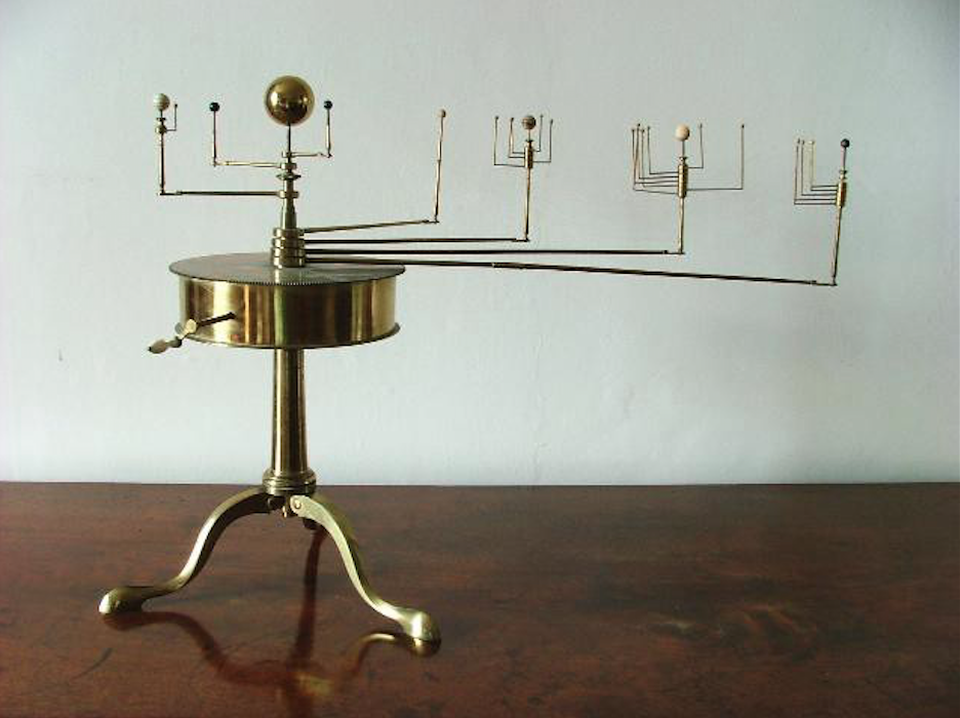 A very old orrery of the planets and moons in the solar system. An examination of this points to an origin in the first half of the 19th century: well after the discovery of Uranus and some of its major moons, but before the discovery of Neptune. (Credit: Armagh Observatory, College Hill.)