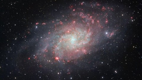 In some galaxies, the pink color can dominate a telescope’s entire field-of-view.
