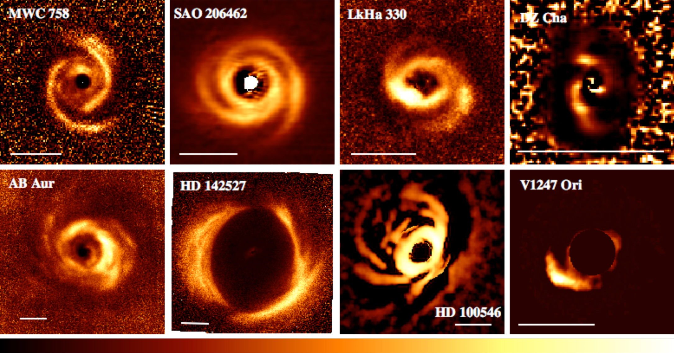 A series of spiral arm features have been revealed in protoplanetary disks, but it remains an open question just what causes them. Two leading candidates is that they’re driven by planets, but also that they’re driven by gravitational instabilities.