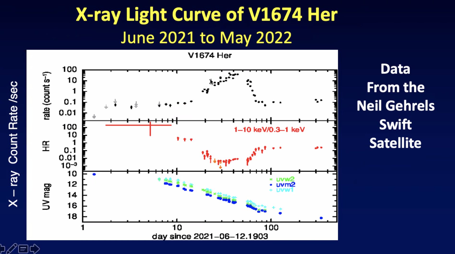 - there were lots of X-rays emitted near the beginning of the nova, indicating that the eruption happened beneath the surface, and that X-rays “broke out” when the explosion reached the white dwarf’s surface,