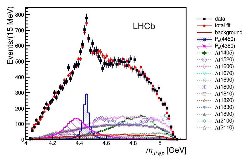 For a long time, these objects were theoretical only. And yet, the theory of the strong interactions — Quantum Chromodynamics (QCD) — demands that they must exist. If they don’t then QCD is wrong! Pentaquarks were first claimed discovered back in the mid-2000s, a discovery which turned out to be spurious. But over the past few years, the first tetraquarks were discovered, and just in 2015, the first verified pentaquark state was announced.