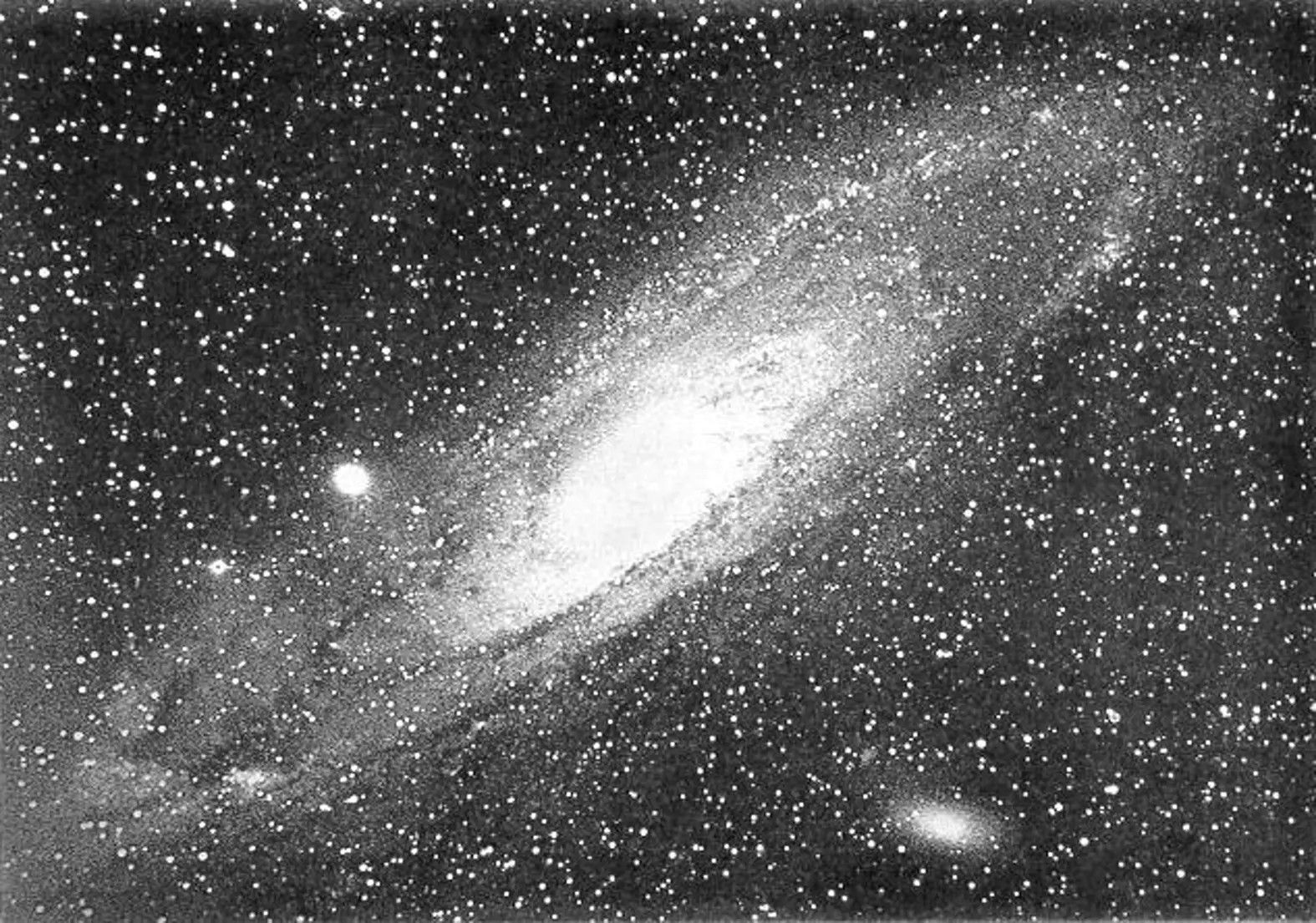 This 1888 image of the Andromeda Galaxy, by Isaac Roberts, is the first astronomical photograph ever taken of another galaxy. It was taken without any photometric filters, and hence all the light is summed together. (Credit: Isaac Roberts)