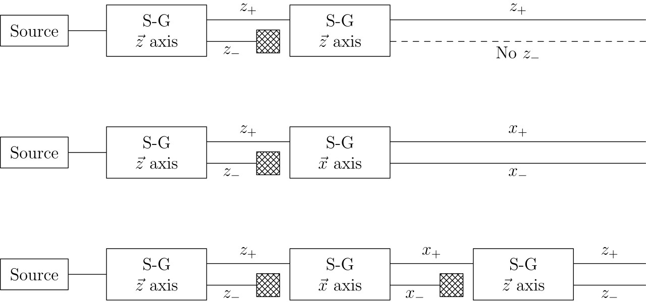 In other words, every individual electron has a finite probability of having its spin be either +½ or -½, and that making a measurement in one particular direction (x, y, or z) determines the electron’s angular momentum properties in that one dimension while simultaneously destroying any information about the other two directions.