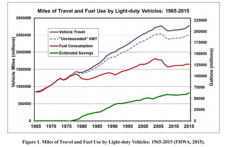 According to a 2017 study by David L. Greene at the University of Tennessee, the fuel economy improvements to cars and light trucks since 1975 have saved Americans a cumulative 1.5 trillion gallons of gasoline, along with an estimated $4 trillion, spread across all income groups. The amount of these savings cannot be overstated: 1.5 trillion gallons of gas is enough to power ever car and truck on the road today for more than 10 years. As of 2017, newly manufactures cars and light trucks have approximately double the fuel efficiency as an equivalent vehicle manufactured 42 years ago.