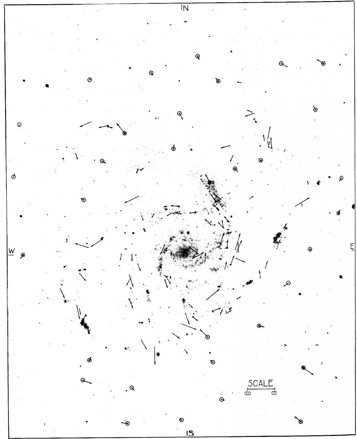 1.) A face-on spiral was seen to rotate. The galaxy M101, known today as the Pinwheel Galaxy, had been observed for many years, and individual features appeared to be showing a rotation over time. The observations were right at the limits of the equipment, but if they were correct, it meant these objects could not be large and distant or their motions would exceed the speed of light. (Modern observations disagree with this; the data was flawed.)