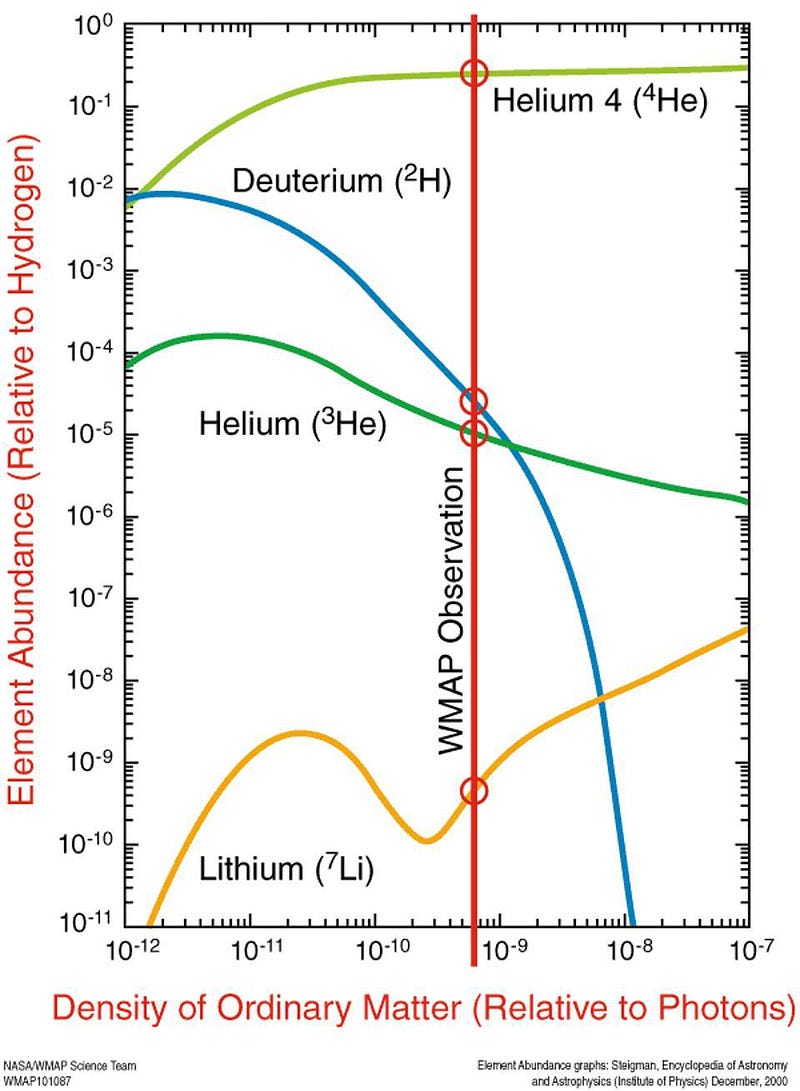 The key observational restriction is the observed abundances of the light elements: hydrogen, deuterium, helium-3, helium-4, and lithium-7. Over the first ~4 minutes of the hot Big Bang, these light elements were forged in the early Universe’s nuclear fires. The amount of each element we get is highly dependent on how much total normal matter there was back in those early moments. Today, we measure these abundances directly, through spectroscopic measurements of gas clouds, but also indirectly: through detailed observations of the cosmic microwave background. Both types of measurements point towards the same picture: one where 4.9% ± 0.1% of the Universe’s energy is in the form of normal matter.