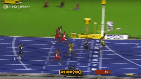 That world record would progress many times over the next few years. Burrell would re-take the record in 1994 with a run of 9.85s, Donovan Bailey would shave the time down to 9.84s in 1996, Maurice Green would improve that to 9.79s in 1999, breaking the 9.8s barrier. Then in 2005, Asafa Powell burst onto the scene, breaking the record with a time of 9.77s, eventually improving that down to 9.74s in 2007, just before the Beijing Olympics. But Bolt’s 9.69s in the 2008 Olympic finals has never been beaten, except by Bolt himself, with his 9.58s time in the 2009 world championship finals and his 9.63s in the 2012 Olympic finals.
