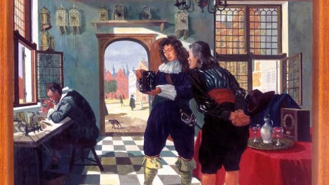 The most renowned clockmakers of the 17th century were Dutch, led by the great physicist Christiaan Huygens. Huygens made tremendous advances in the science of wave mechanics, optics, physics (discovering centripetal force), and astronomy (including investigating Saturn’s rings and discovering its giant moon, Titan). In 1656, however, he made his greatest contribution as a scientist and inventor: the pendulum clock.