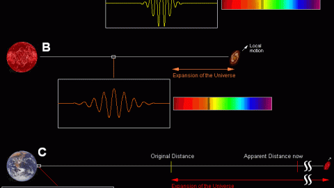 - The component that’s due to the overall expansion of the Universe, the redshift-distance relation, is responsible for the majority of the redshifting, particularly at great distances.