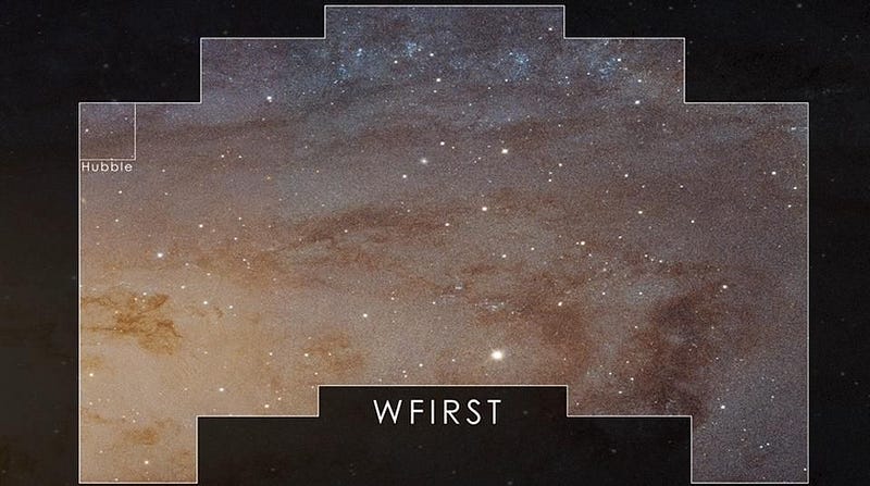 WFIRST is unprecedented: it’s an observatory the size of Hubble, with the same depth, but with more than 50 times the field-of-view. It would be outfitted with two incredible instruments: a wide-field imager and a coronagraph. The imager is capable of surveying huge areas of the Universe to better understand galaxies, the intergalactic medium, dark matter, and dark energy. It would find thousands of new Type Ia supernovae out to unprecedented distances, and determine to better than 1% whether dark energy is a cosmological constant or something more exotic.