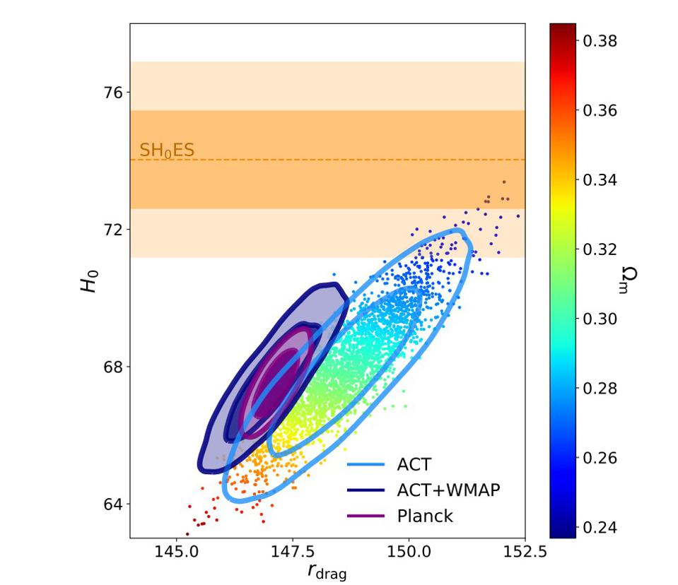 So then, you might think that everything hinges on the expansion rate. If you can accurately measure that, you can simply do the math and precisely arrive at the age of the Universe. Beginning the early 2000s, and ever since, the best data we have comes from the Cosmic Microwave Background: first from WMAP, then from Planck, and, as of July 14, 2020, from the Atacama Cosmology Telescope as well.