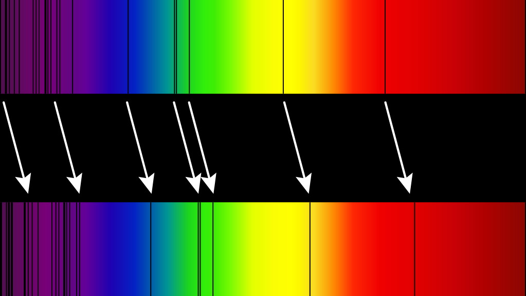 Because we know the properties of the atoms and ions that make up light-emitting (and, for that matter, light-absorbing) objects, including the specific quantum transitions that occur within those bound states, we can determine how severely that observed light is “shifted” from the rest-frame in which it was emitted. When an electron in a hydrogen atom, for example, drops from the first excited state down to the ground state, it emits an ultraviolet photon of precisely 121.5 nanometers. But for almost every object that we observe that contains hydrogen in an excited state, we don’t see an emission (or absorption) line at 121.5 nanometers at all.