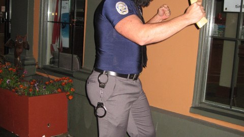 Well, when I saw this, I immediately knew what my Halloween costume had to be: Axe cop with crazy pizza hair with a super curly beard and mustache with a robot ghost inside.