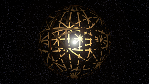 - A Dyson sphere, where a large light-collecting structure envelops the star, capturing all its energy output.