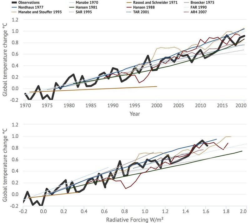 However, globally, hurricanes have not become more frequent; that’s actually a piece of climate misinformation, alongside many others, that are being repeated by numerous sources. We didn’t really begin monitoring the entire globe — including the oceans — for hurricanes and other tropical storms until the 1970s, meaning that our earlier records are woefully incomplete. It has been noted that the number of storms in the Atlantic hurricane basic has increased since the 1970s, but that is not attributable to global warming. Rather, two different studies show that aerosols from human activity and volcanic forcings drove that recent spike.