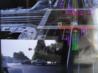 View from the interior of a Google self-driving car in Mountain View. Source: GLENN CHAPMAN / Staff (Getty Images)