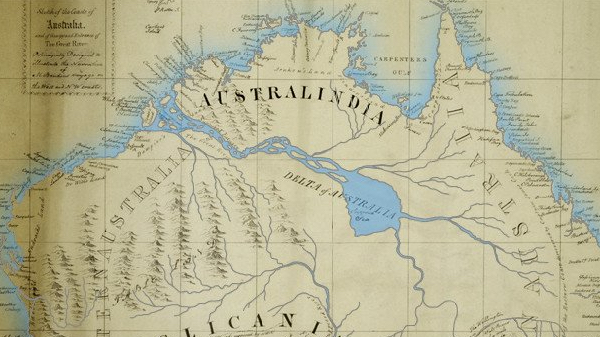 In 1827, former East India Company officer Thomas J. Maslen published this map of that inland sea in his book The Friend of Australia, which provided instructions for surveying and exploring the island-continent’s interior.