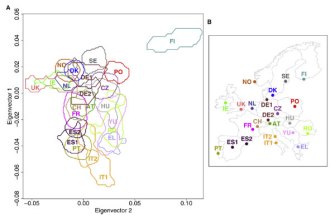 These are among the conclusions to be drawn from a genetic map of Europe, produced by the Erasmus University Medical Center in Rotterdam (the Netherlands), published in the August 7, 2008 issue of Current Biology. In its Science section, the New York Times devoted an article to the study, reproducing the genetic map.