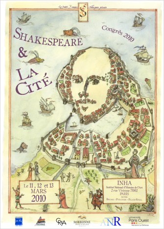 Shakespeare & la cité took place over three days in March 2010 in the Institut National d’Histoire de l’Art in Paris. It discussed such subjects as Urbanité et théâtralité dans le Londres de Shakespeare, Shakespeare et l’érotique de la ville, and Entre destruction et édification: ambivalence de la Cité à la Renaissance. The serious bits were interspersed with period music and Elizabethan high tea.
